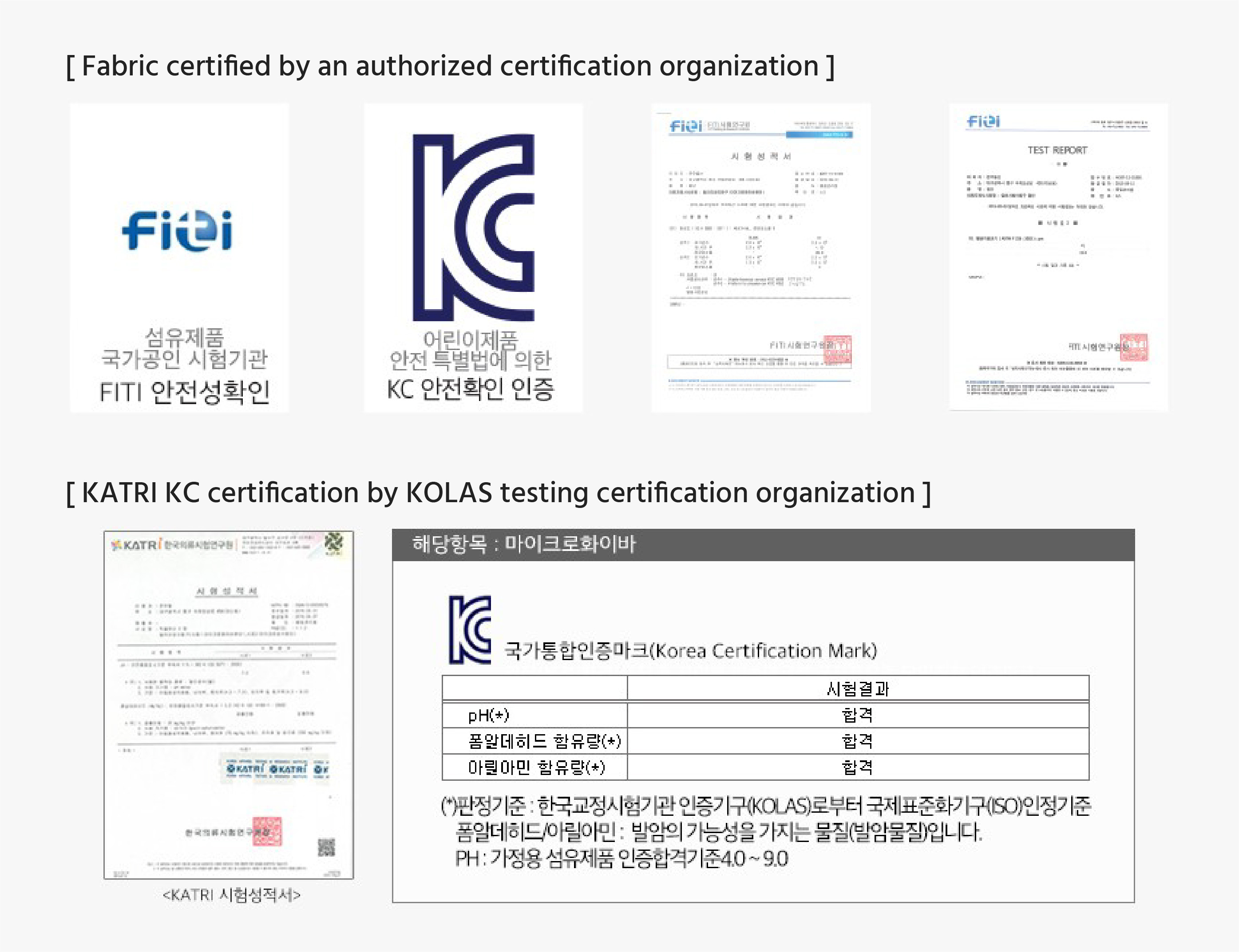 COCOBE also satisfied the KAFRI(Korea Apparel Testing & Research Institute)’s laundry test with excellent grades. We have certified that there is little variation in the product even with frequent washing.