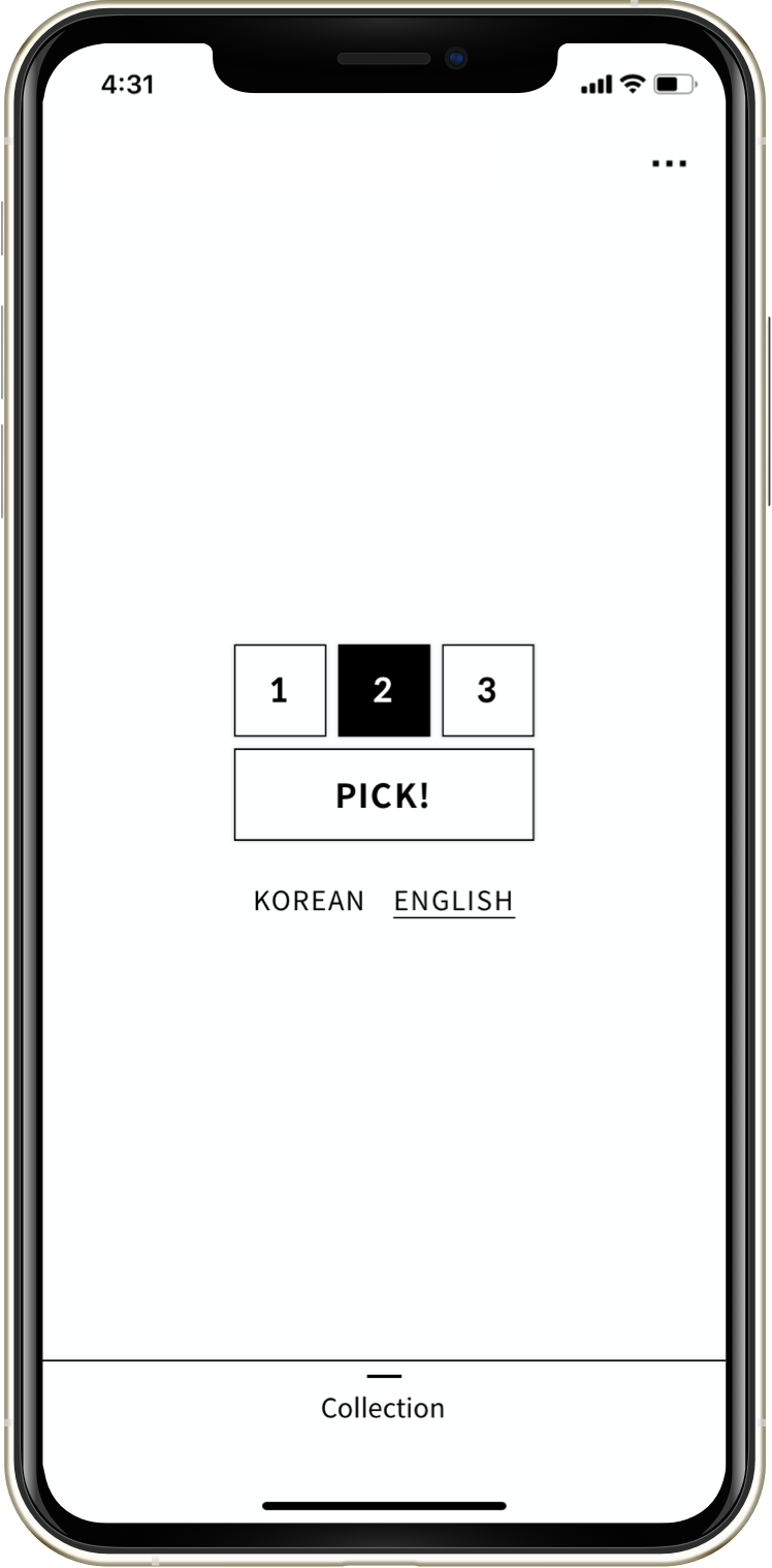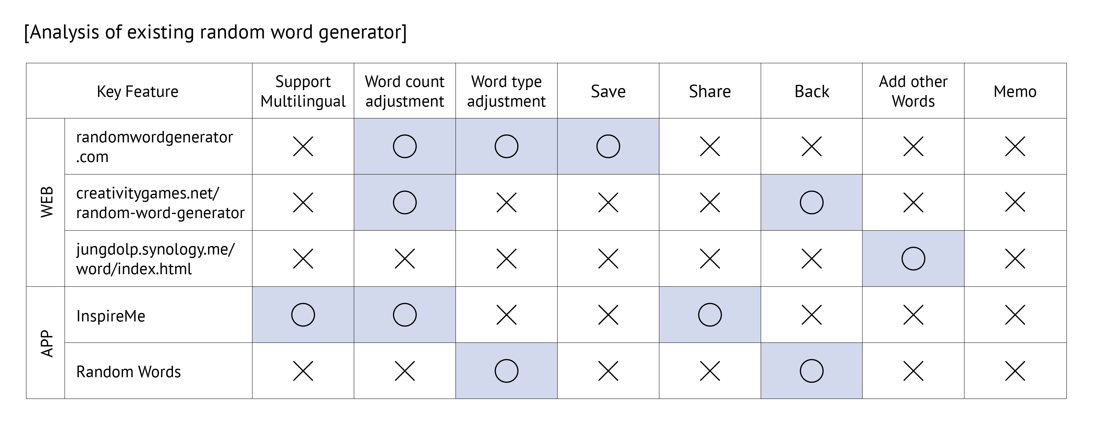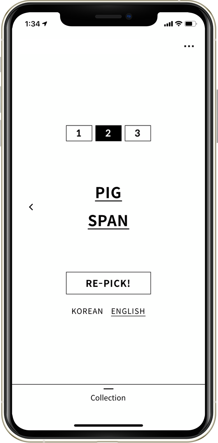 Try ideation in a language that is more convenient for you among Korean and English words. Over 15,000 Korean words and over 5000 English words provide 700 billion word combinations.