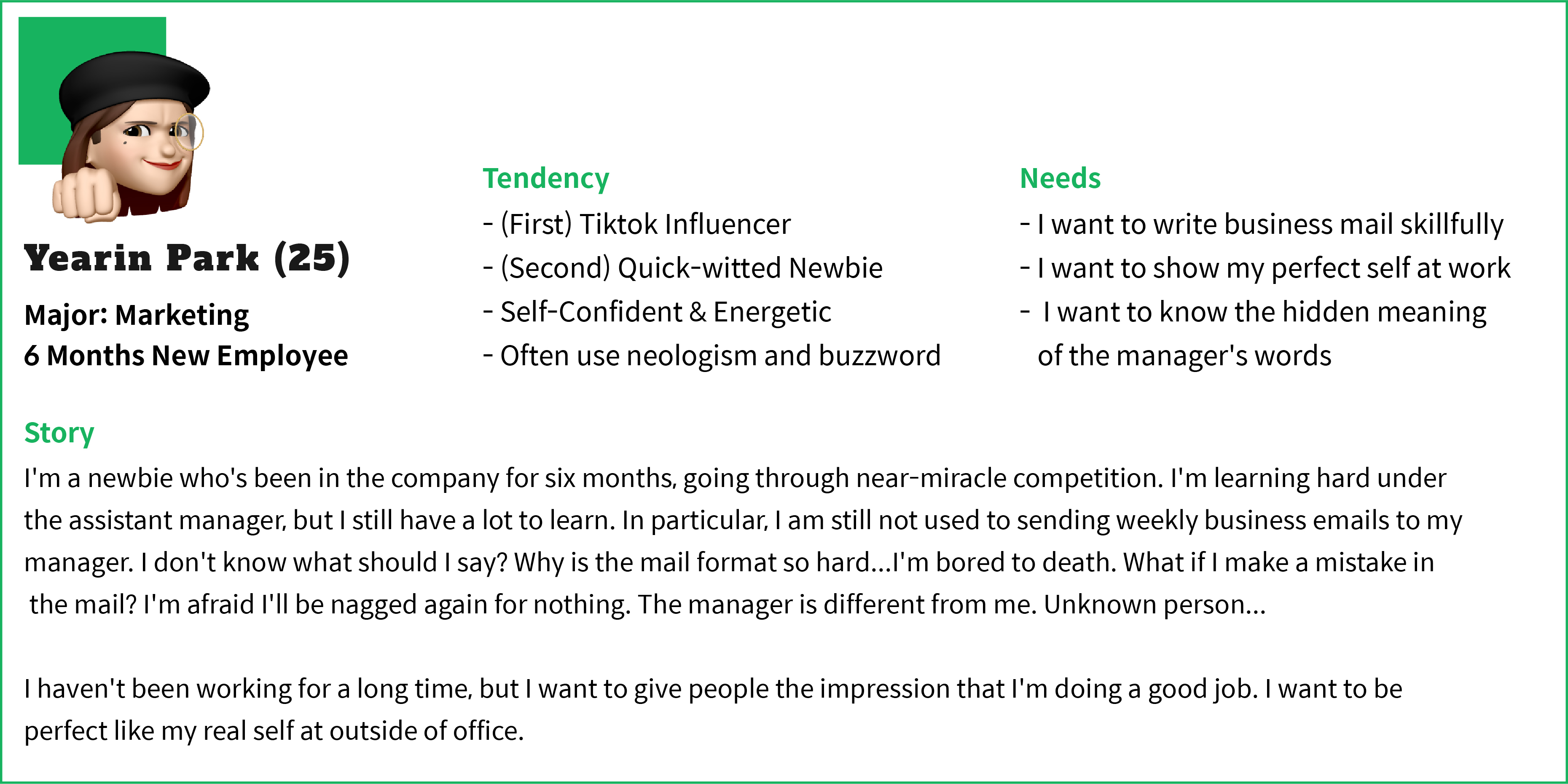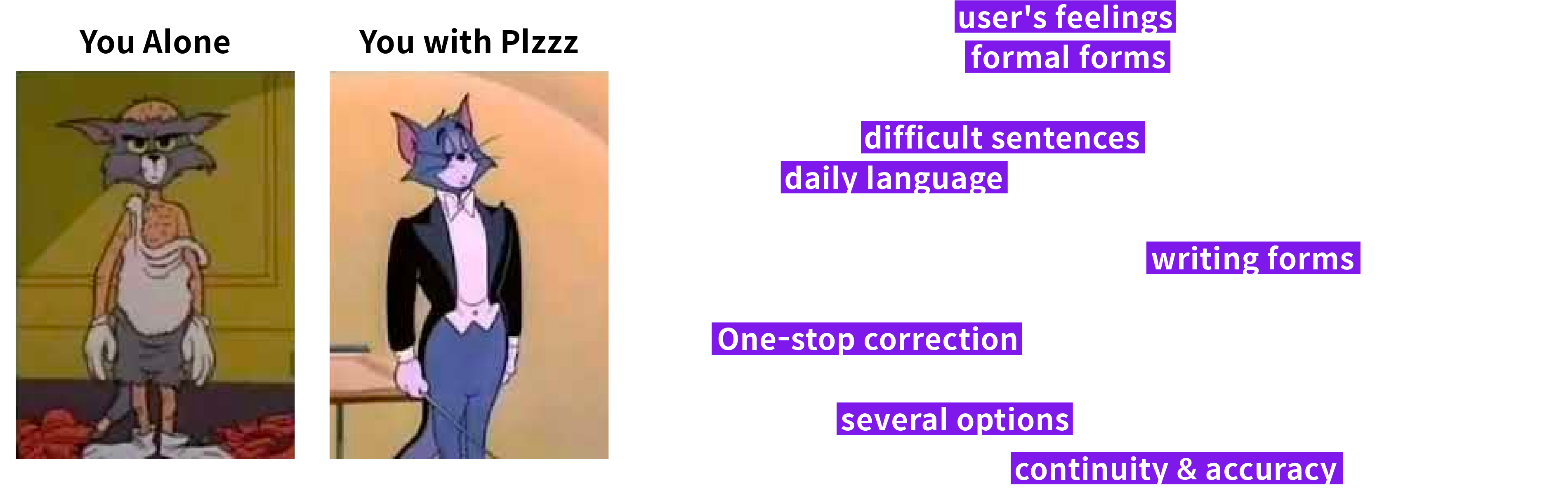 I was born and raised in Korea, why was it hard to write such a thing? It was because I felt awkward with the terms I would use for professor and business etiquette. In Korea, the order of rank is very strict and honorification is quite difficult. I was busy with just what I had to do, but the time I spent worrying about honorification and e-mail etiquette was a waste. So I thought about a solution to this, and I propose a Plzzz service.
