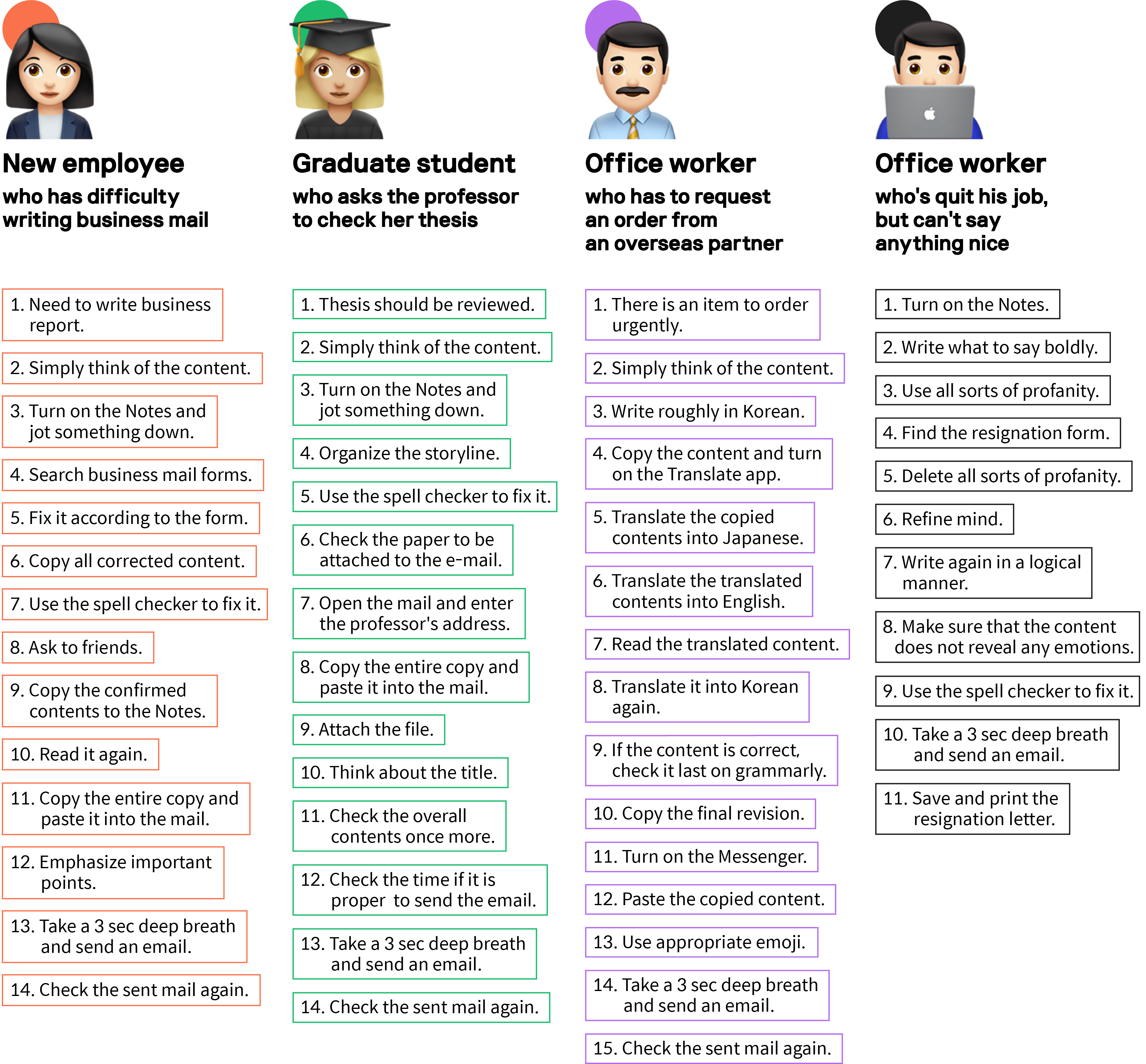 Looking back on my first internship at the company, it was hard for me to write a business mail. Looking back on previous events, it was quite difficult to send a simple e-mail to a professor when I was a college student. And it isn’t a personal issue, it was something that many people are going through.