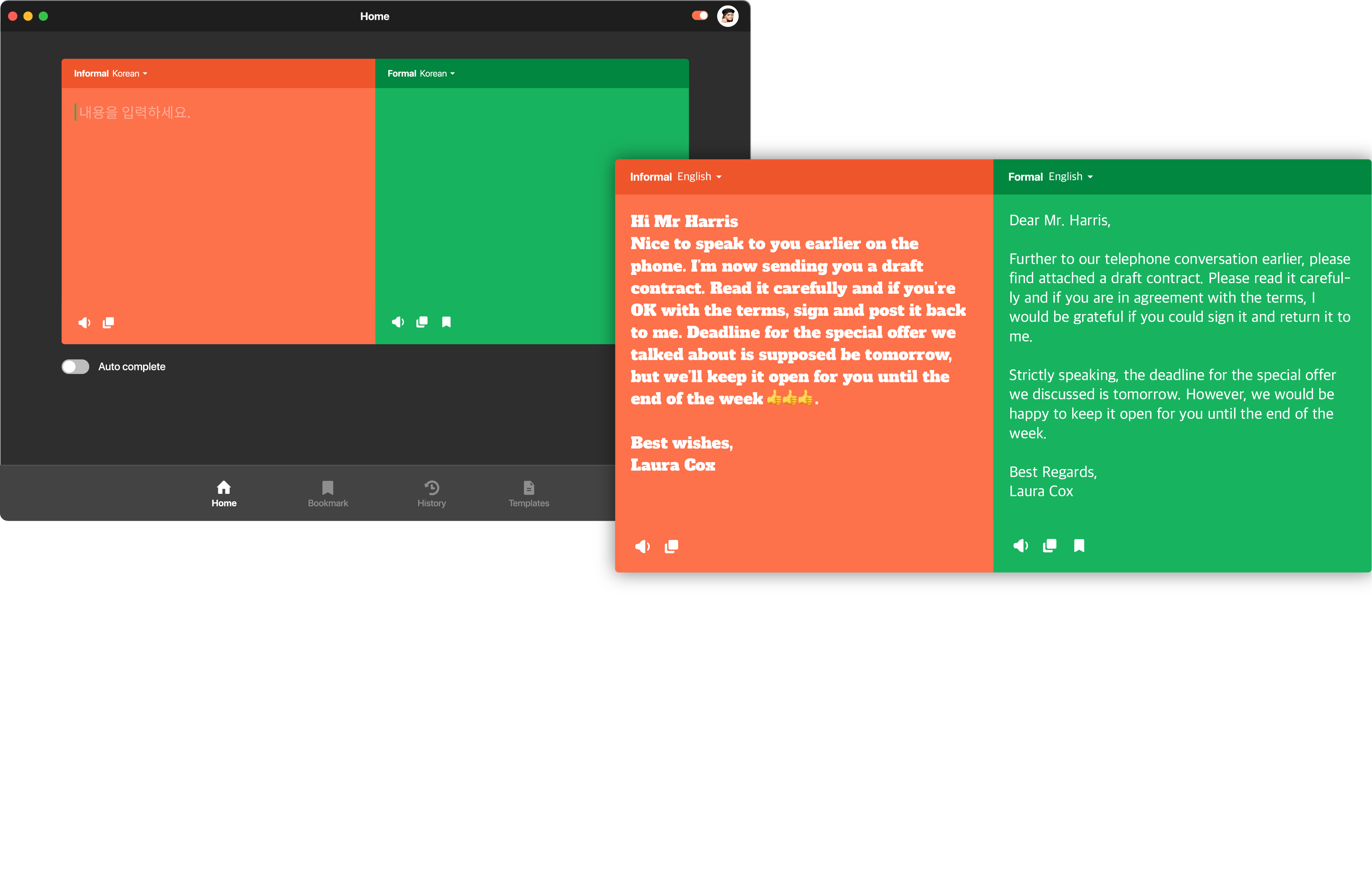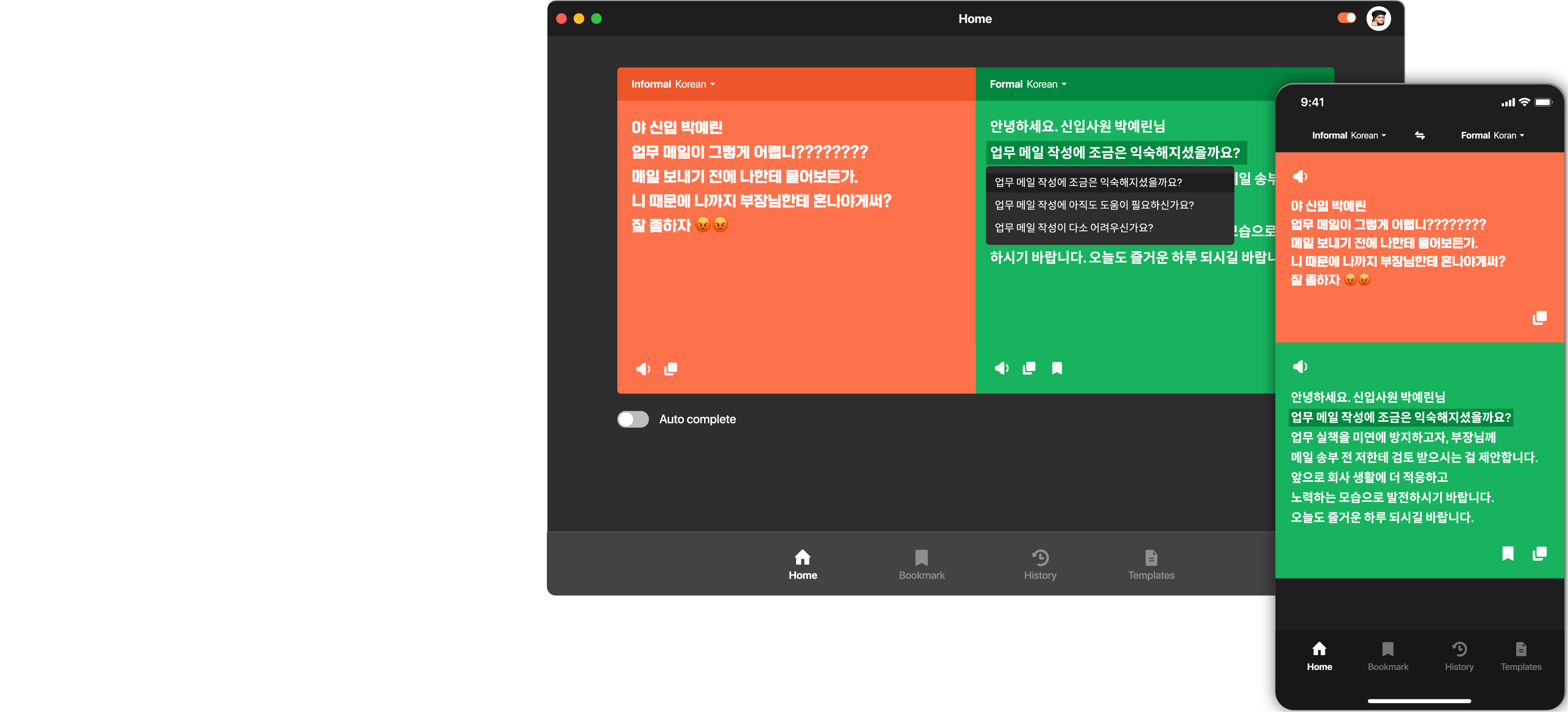 Insights: Thus, our team decided to enable real-time translation/correcting based on the corpus data, and translate the entire sentence so that we could provide several options according to the appropriate level of honorification.