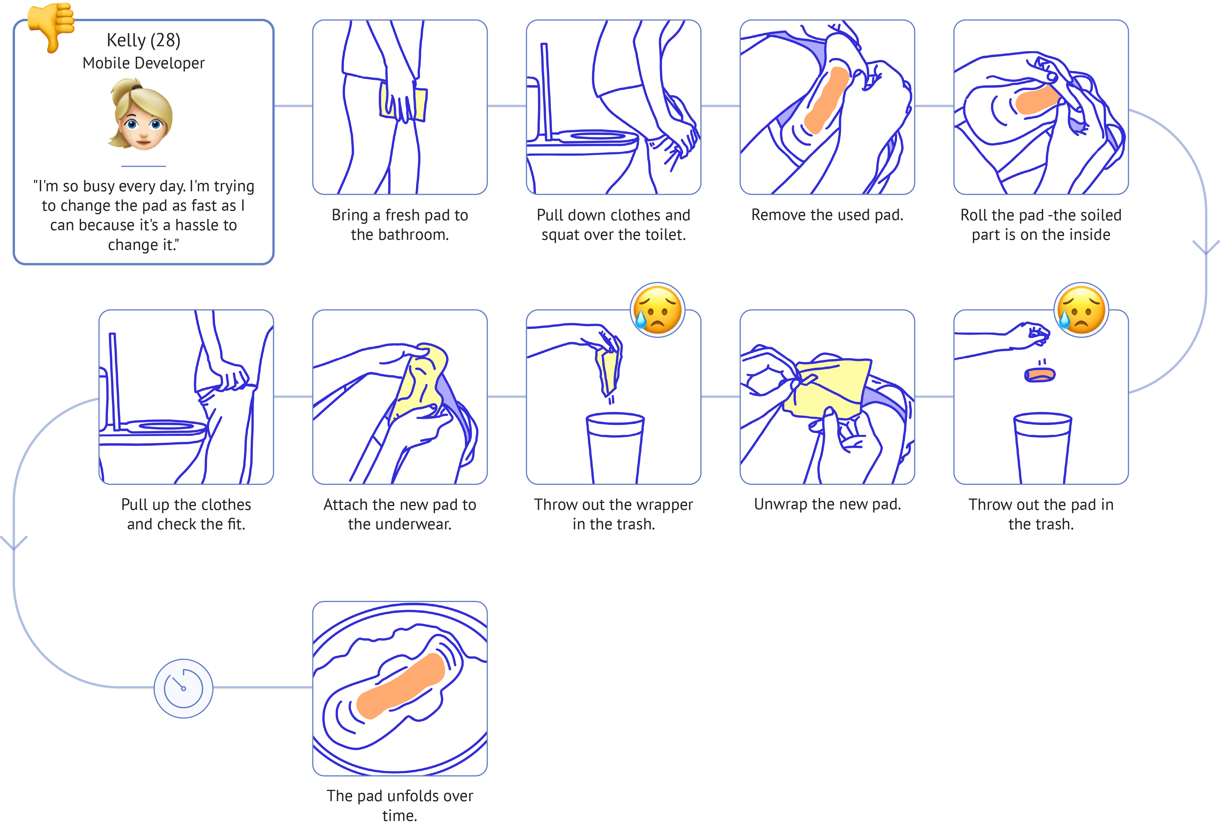 Suggest a convenient way to replace the sanitary pad resolving the inconvenience of behavior flow.