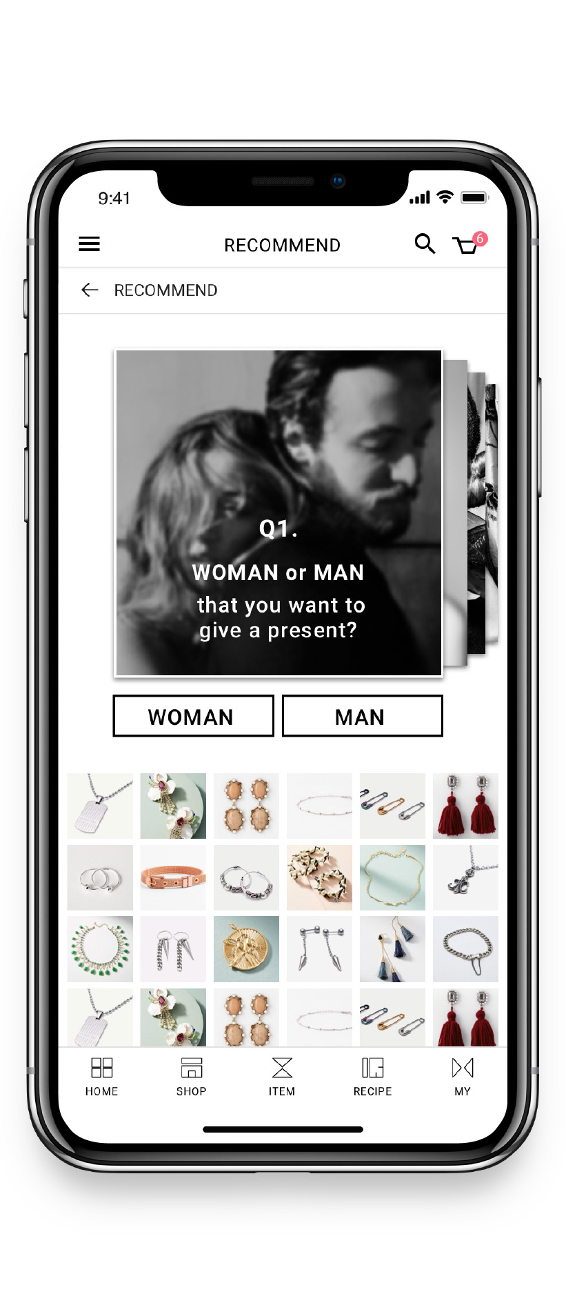 If users are trying to present jewelry and they are not sure of the person's preferences, users can use Selly's Recommendation to find accessories that are perfect for your partner. Selly recommends optimal accessories by filtering subsidiary materials through 5-10 questions such as gender and age for the person to be presented.