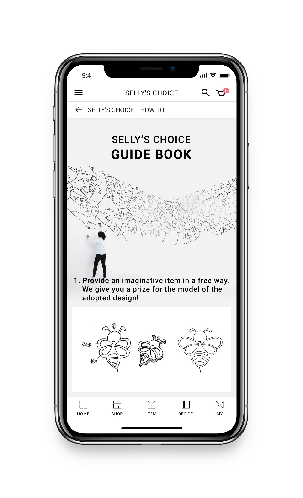 When Selly's users want a new subsidiary material, Selly's user can propose their idea through such an idea sketch. If Selly adopts a commercial idea, users are compensated, and the product is sold under the Selly name. To make it easier for unfamiliar users to try, Selly provides a guide in photos and videos.