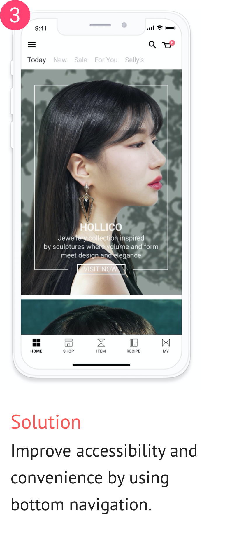 On Selly's home screen, users can find updates on the most popular subsidiary materials, combination recipes, and stores every day. Users can access various product information since new content such as popular products and special exhibitions are provided every day. Users can move to various screens through the top and bottom navigation.
