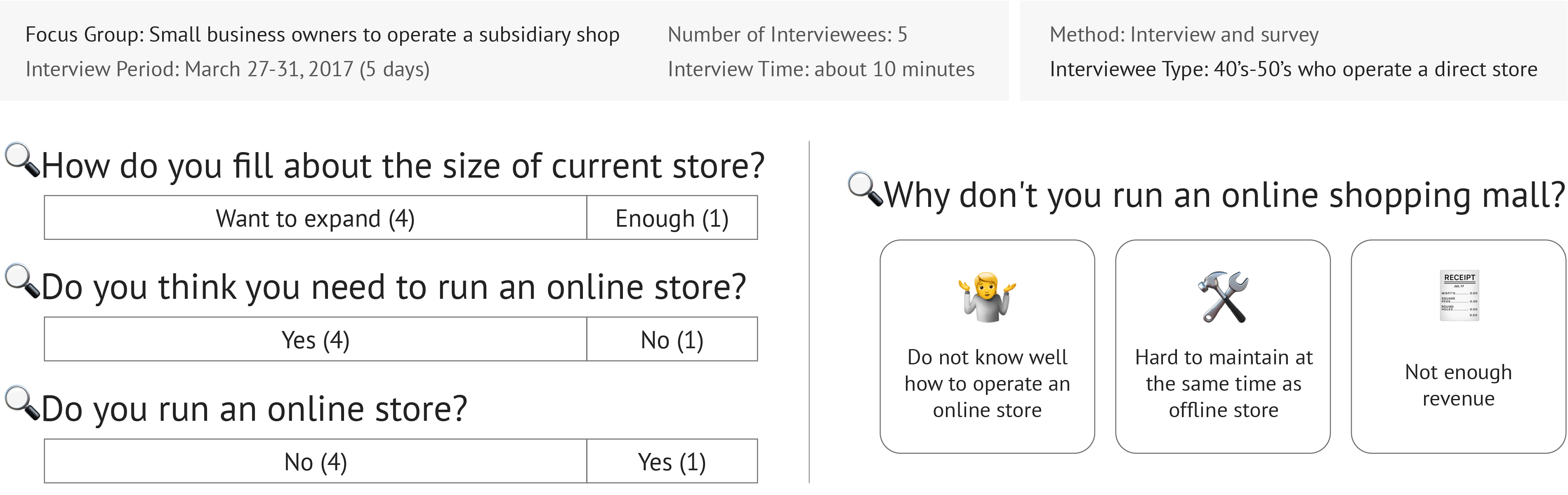 Based on this finding, we divided 3 main target users: Master of DIY jewelry, Consumers interested in jewelry, and Storekeeper of the subsidiary material store. We then created the personas of our target users. 3 different personas show the different needs of users. Personas helped us put the research findings into context to better understand our target users.